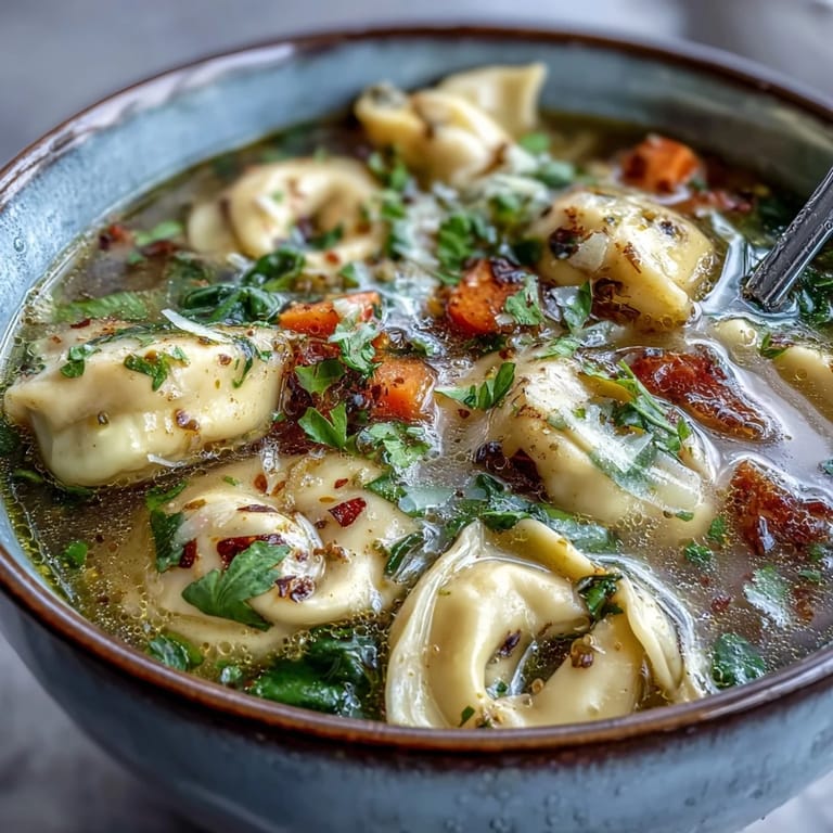 This soup is best eaten the day you make it while the tortellini still has some structural integrity, though it keeps in the fridge for up to three days. Reheat gently over low heat so the cream doesn't break, and don't be shy about adding a splash of broth if it thickens up. Serve with crusty bread because the bread becomes an essential tool for soaking up every last drop of broth.