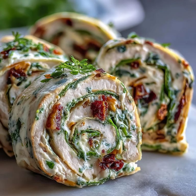 One time, I made these pinwheels for a family picnic after we decided to ditch our usual sandwiches. Midway through assembling, my youngest insisted on taste-testing the filling, declaring it 'too cheesy,' only to ask for seconds ten minutes later. I remember how everyone reached for them eagerly—each spiral holding just enough turkey and spinach to feel substantial but light. The laughter and chatter made the rolls disappear faster than I expected, turning a simple snack into a main event. No matter the occasion, these never last long.